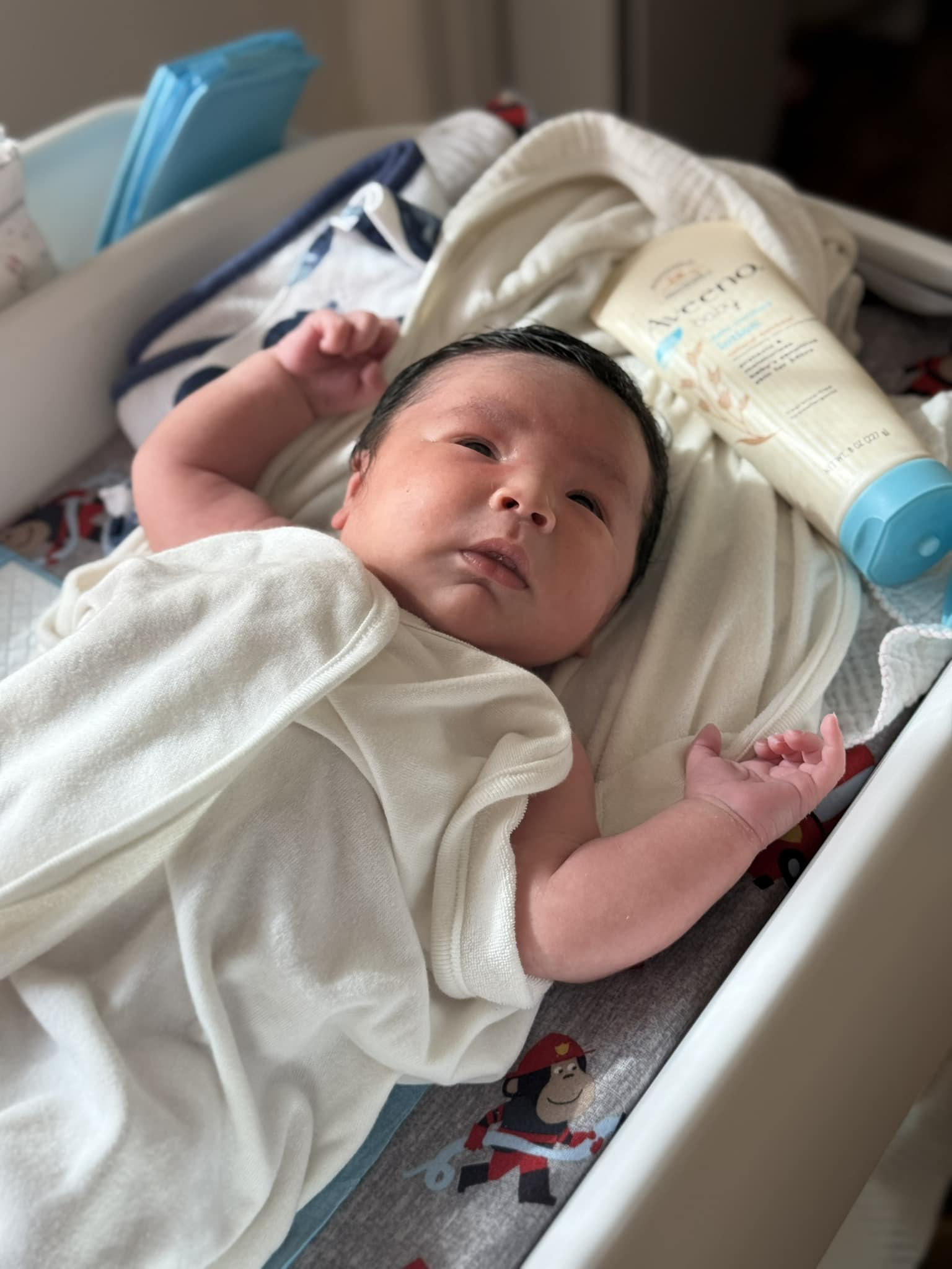 11/8/24(1w2d)寶寶的臍帶掉了!是 BIG 換尿布的時候發現的,雖然之後我和外婆幫寶寶洗澡的時候,覺得沒有掉乾淨,像是 BIG 不小心扯到臍帶的⋯⋯(有時候看 BIG 育兒只能眼不見為淨了)。掉下來的臍帶,我用大創買的小玻璃罐裝,打算之後第一次幫寶寶剃髮也用同款小玻璃罐裝。